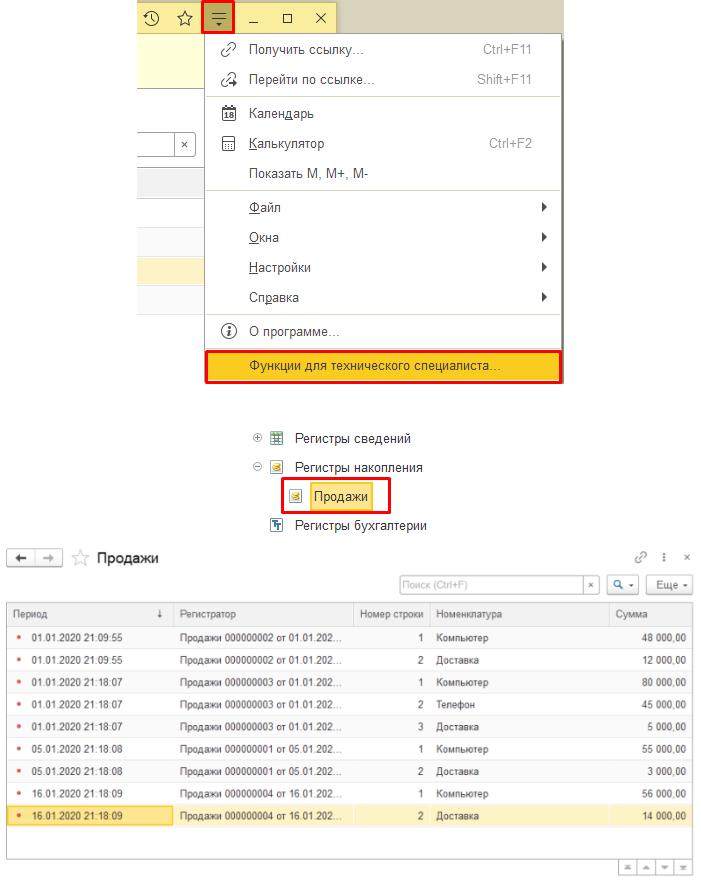 Но мы, будучи разработчиками, можем обратиться к любому объекту конфигурации. Для этого воспользуемся функциями для технического специалиста.
