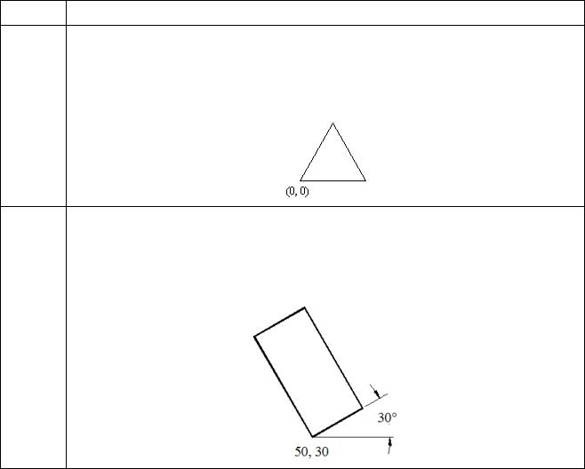 5Используя инструмент Отрезок, задать координаты точек в относительных полярных координатах, чтобы получился равносторонний треугольник со стороной 10 (все углы по 600), начав с точки с координатами (0, 0) и ведя отсчет по часовой стрелке.