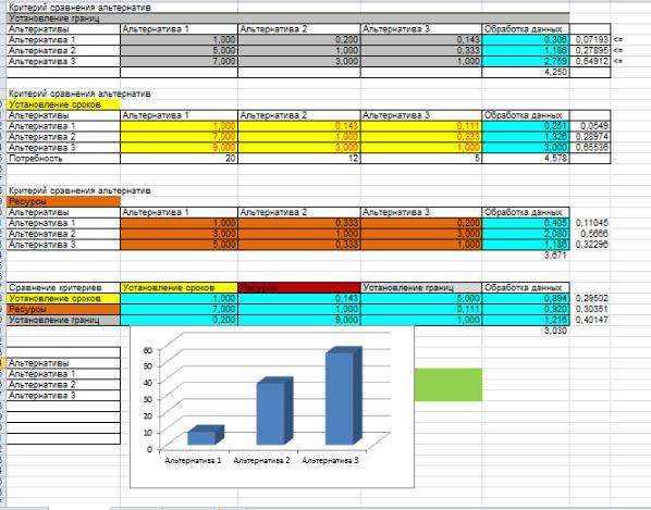 На рисунке в качестве примера выполнения индивидуального задания по формализованному моделированию представлена типичная программа для принятия решения методом сравнения альтернатив.