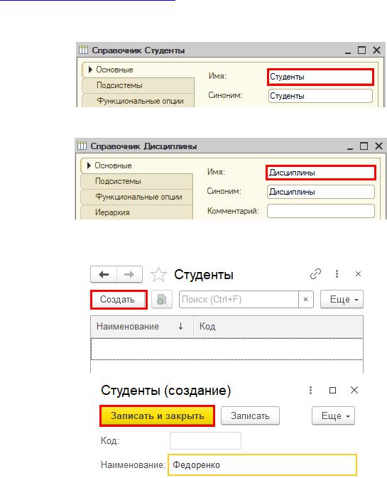 Аналогично добавьте несколько элементов в справочник «Дисциплины».