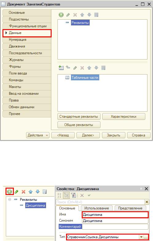 Добавим реквизит «Дисциплина».