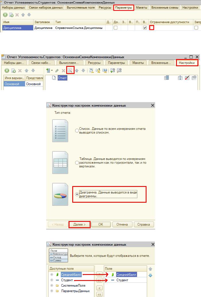 Чтобы у пользователя была возможность выбирать дисциплину, по которой он хочет построить отчет, необходимо включить параметр «Дисциплина» в пользовательские настройки.