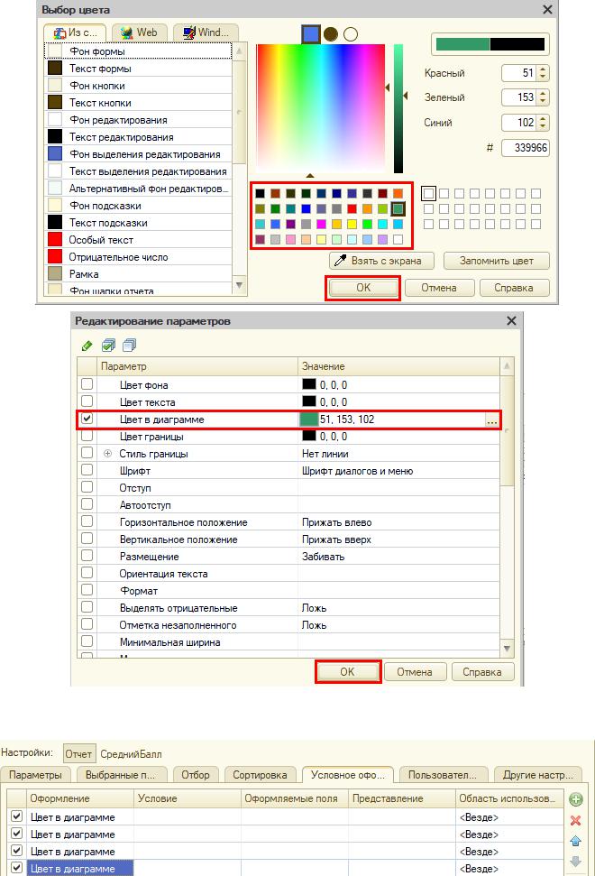 Мы добавили оформление для отличников (RGB: 51, 153, 102 – зеленый цвет). Аналогичным образом добавьте еще три оформления: для хорошистов, троечников и двоечников.