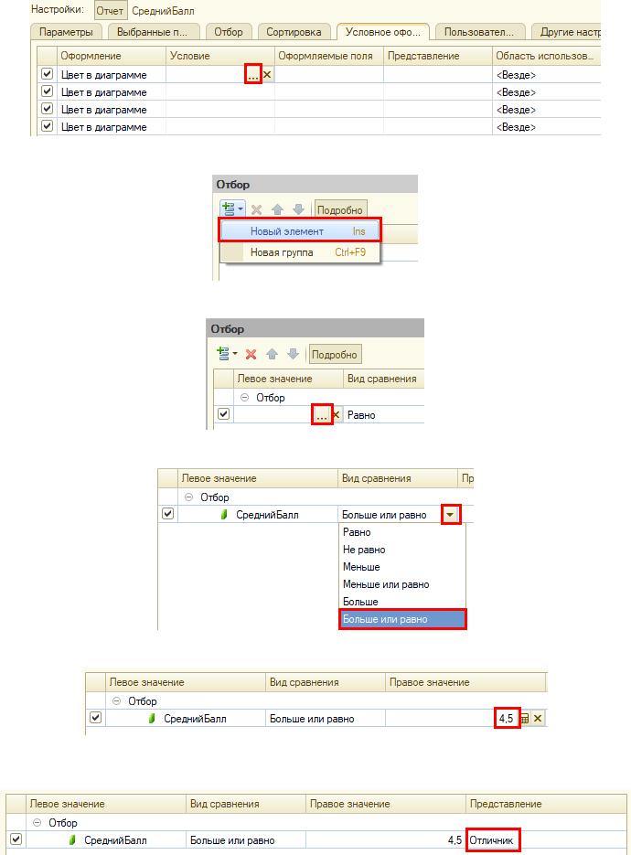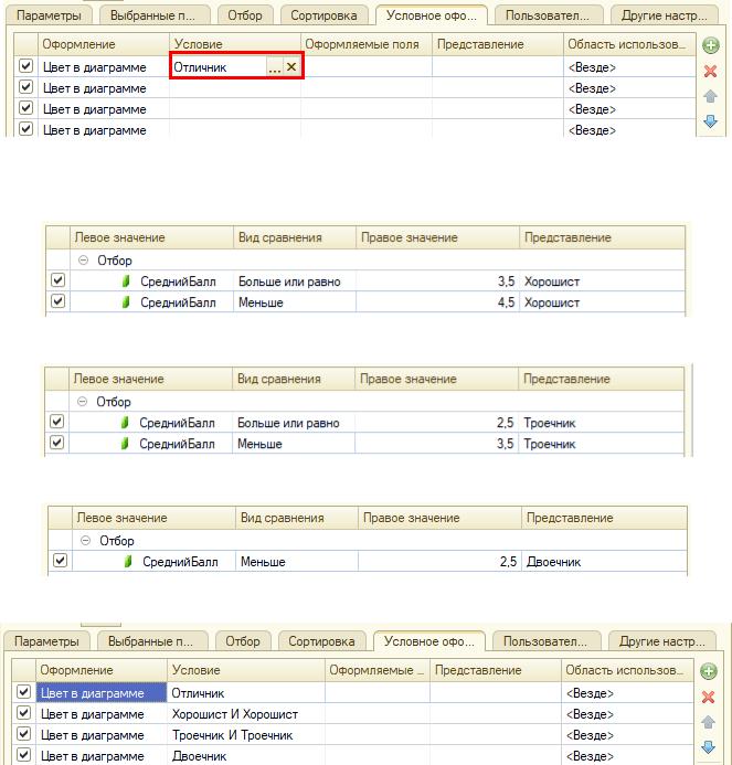 Чтобы в дальнейшем понимать, для кого сформировано условие – установим представление «Отличник».