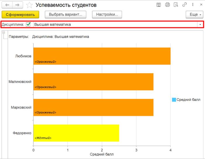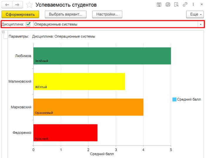 В зависимости от выбранной дисциплины будет меняться отчет.