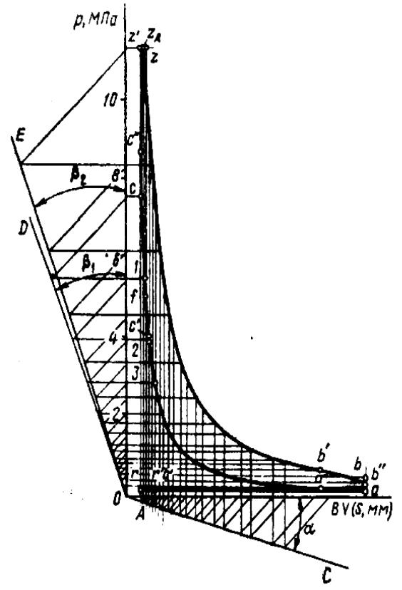 Масштаб давлений (МПа/мм) рекомендуется выбрать: mp=0,02; 0,025; 0,04; 0,05;0,07…0,10.