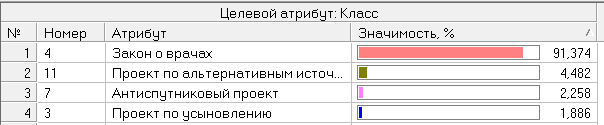 Значимость атрибутов: