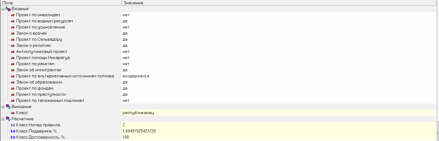 Пример найденной закономерности: