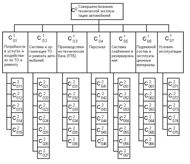 Дерево систем строится по тем же законам, как и дерево целей, т.е. определяется генеральная система С°, которая структуризируется на подсистемы первого (С101, С102, .... С1Оn), второго и последующих уровней.