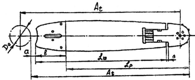 a – зазор между пильной шиной и ведущей звёздочкой (a = 20...30 мм),
