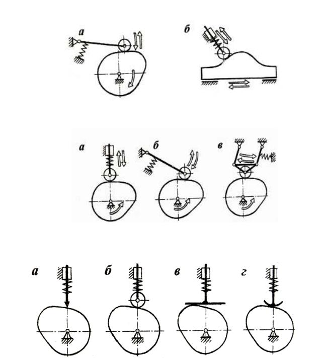 -механизмы с остроконечным толкателем или коромыслом (рис. 1.12 а);