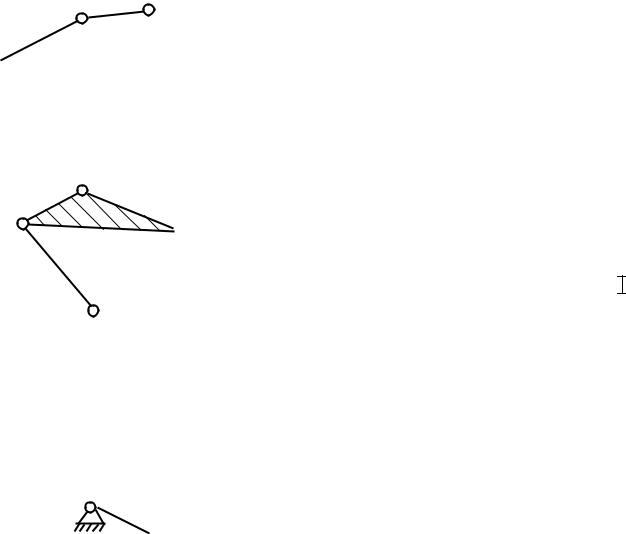 г) звенья, входящие в три кинематические пары, заменяются треугольником; в четыре кинематические пары четырехугольником и т.д.