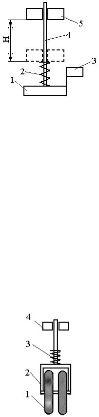 Рис. 5.2 Принципиальная схема установки динамического нагружения 1 – штамп; 2 – пружина; 3 – виброграф; 4 – направляющая; 5 - груз