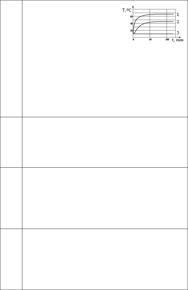 Доска толщиной 5 см нагревается с двух сторон в воде температурой 80 °С. На рисунке показан график зависимости распределения температуры внутри доски для трех моментов времени: 1 – через 1 минуту после начала прогрева; 2 – через 20 минут; 3 – через 40 минут. Прогрелась ли за 40 минут доска до температуры, не ниже 70 °С
