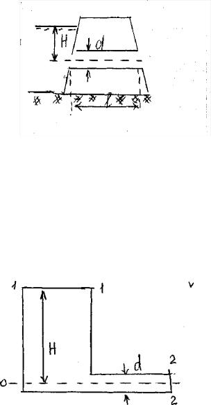 бьефе Н1 = 4 м, в нижнем Н2 = 1 м. Расход воды Q = |