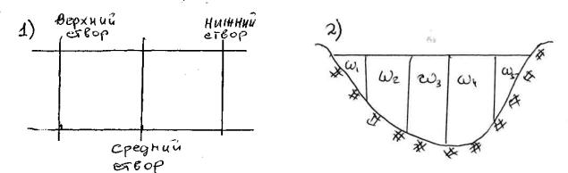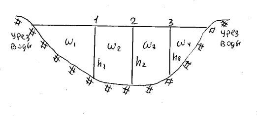 Рис. 3. Разбивка скоростных вертикалей (1, 2, 3)