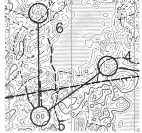 Рис. 12. Тактика эстафеты. Вы лидируете на последнем этапе эстафеты за несколько КП до финиша. Сзади никого не видно, но отрыв от соперников Вам точно не известен. В каком направлении Вы уйдете с КП 5?