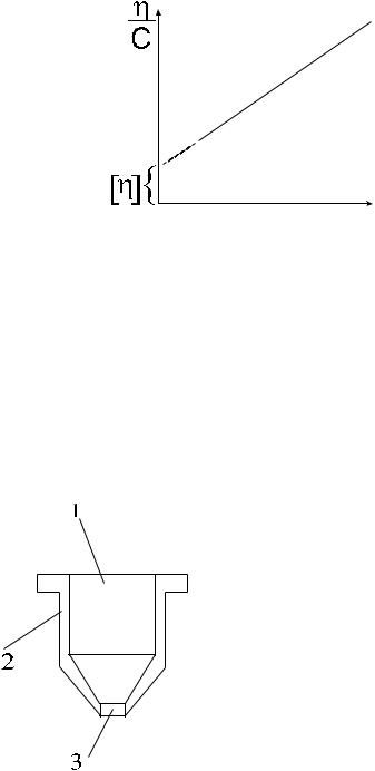 На основании полученных данных строят прямую зависимости ηуд/C от С (рис. 4), продолжают её до пересечения с осью ординат и по полученному в точке пересечения значению ηуд/C рассчитывают молекулярную массу полимера по формуле