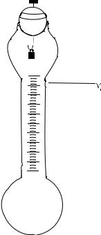 Через отверстие верхнего шарика заливается растворитель до верхней метки трубки (V1).
