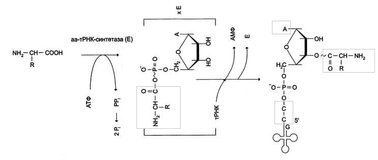 ферментом, взаимодействует с соответствующей тРНК с образованием аминоацил-тРНК