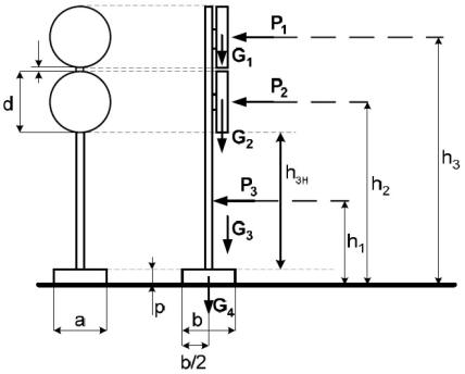 Исходные данные Оценим устойчивость опоры с группой дорожных знаков при воздейст-