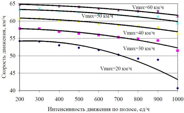 3)фактическая скорость транспортного потока;