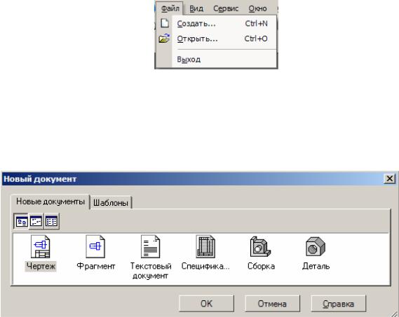 Если щелкнуть левой кнопкой мыши по пункту Создать, появится диалоговое окно Новый документ, предназначенное для выбора нужного документа и режима работы системы (рис. 1.2).