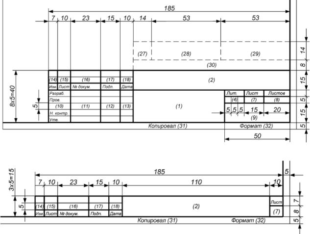 Рис. 1. Форма и размеры основных надписей для начальной (а)