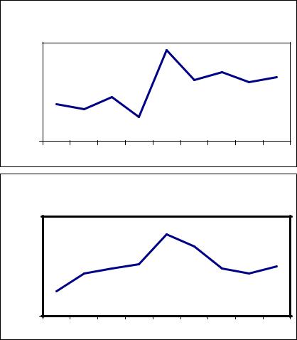 На рисунках 1а и 1в приложения 7 мы наблюдаем плавные колебания прироста (низкая частота колебаний). Средний период колебаний более 3 лет.