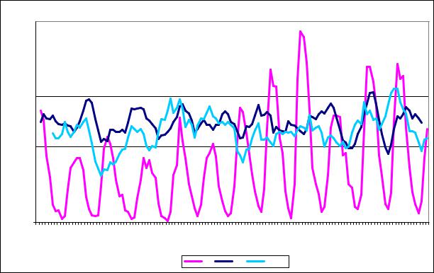 Рис. 3. Индексы прироста сосны Хреновского бора (ТЛУ В2) на фоне |