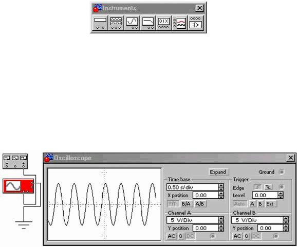 2.Из панели контрольно-измерительных приборов (Instruments) выбрать осциллограф
