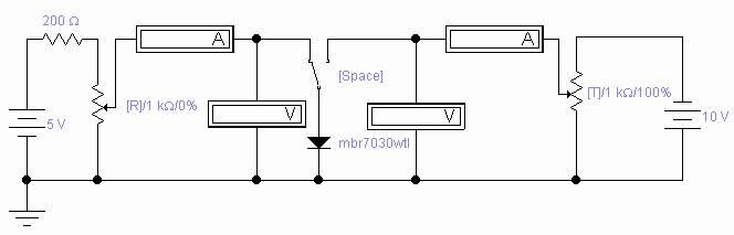 1.3.1.Исследуйте прямую ветвь диода. Для переключения ключа используйте клавишу Space (Пробел).