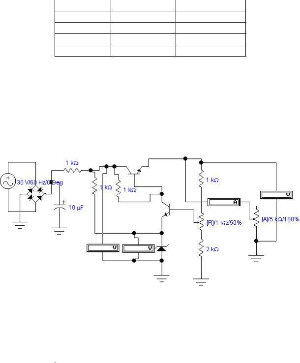 8. Соберите схему двухполупериодного выпрямителя с емкостным фильтром и компенсационным стабилизатором: