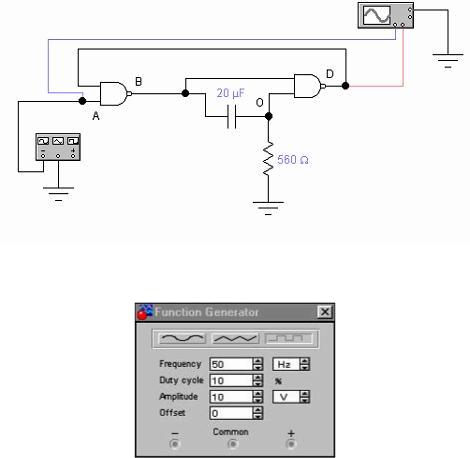 5.1.1. Соберите схему одновибратора (рисунок 2). Подайте на вход одновибратора импульсы от внешнего генератора. Зарисуйте осциллограммы напряжений в точках А, В, О, D.