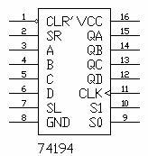 Четырехразрядный универсальный сдвиговый регистр 74194.
