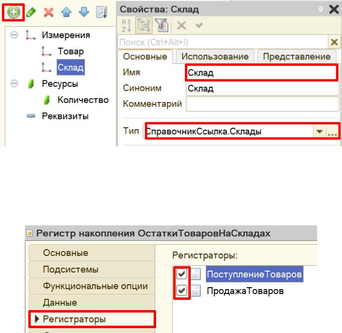 В нашем случае, на количество товаров будут влиять оба созданных документа. Определим их в качестве документов-регистраторов на вкладке «Регистраторы».