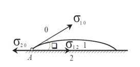 Рис. 5. Контур капли жидкого адгезива на поверхности подложки В точке А, находящейся на этой границе, приложены три силы: сила