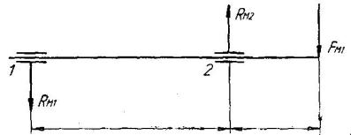Рис. 8.4. Схема к определению реакций, возникающих в опорах ведущего вала от консольной силы FM1