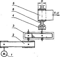 одноступенчатый косозубый редуктор; 4- муфта зубчатая; 5 – барабан; 6- опоры барабана (подшипники).