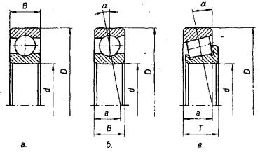 Рис. 3.1. Подшипники качения однорядные а – шариковый радиальный; б – шариковый радиально-упорный;