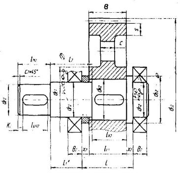 Как правило, шестерню и ведущий вал выполняют как одно целое (см. Рис. 4.1), т.е. в виде вала-шестерни.