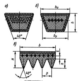 Рис. 7.1. Конструкции клиновых и поликлинового ремней