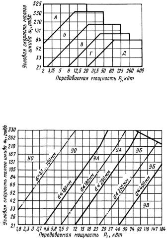 Тип сечения ремня принимается в соответствии с рис. 7.2-7.4. Можно принять клиновой ремень нормального сечения В, клиновой узкий УО и поликлиновый сечения Л.