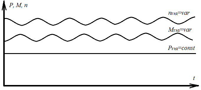 При ходе судна во льдах поддерживается режим постоянства мощности Pгэд=const (рис. 6).