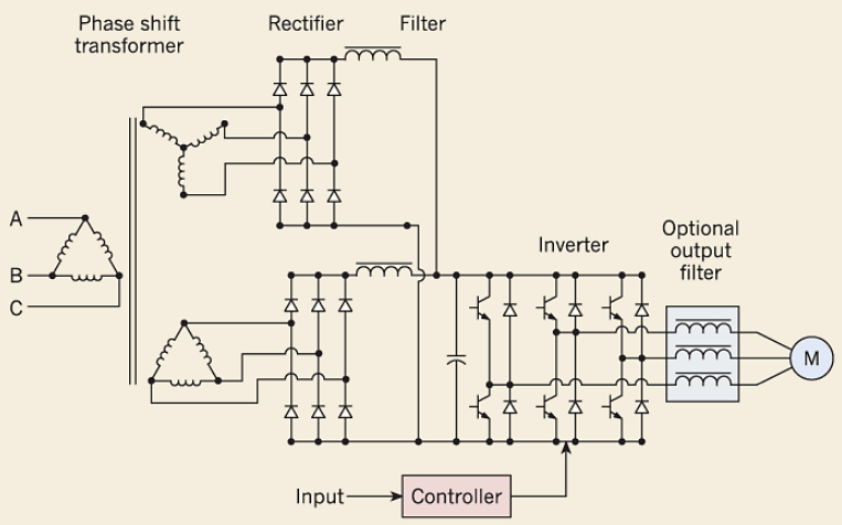 Принципиальная схема 12-типульсного преобразователя частоты представлена на рис. 2.