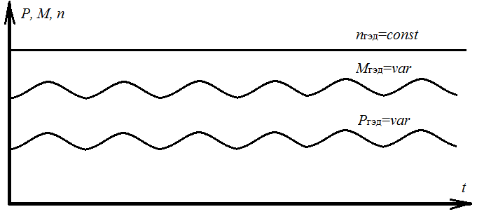 После выхода ГЭД на номинальную частоту вращения (рабочая точка 3, рис. 4) поддерживается режим постоянства частоты вращения ГЭД nГЭД = const.