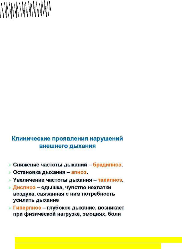 В норме дыхание – ритмичный процесс. При патологических состояниях могут наблюдаться нарушения ритма дыхания (так называемое «периодическое дыхание»).