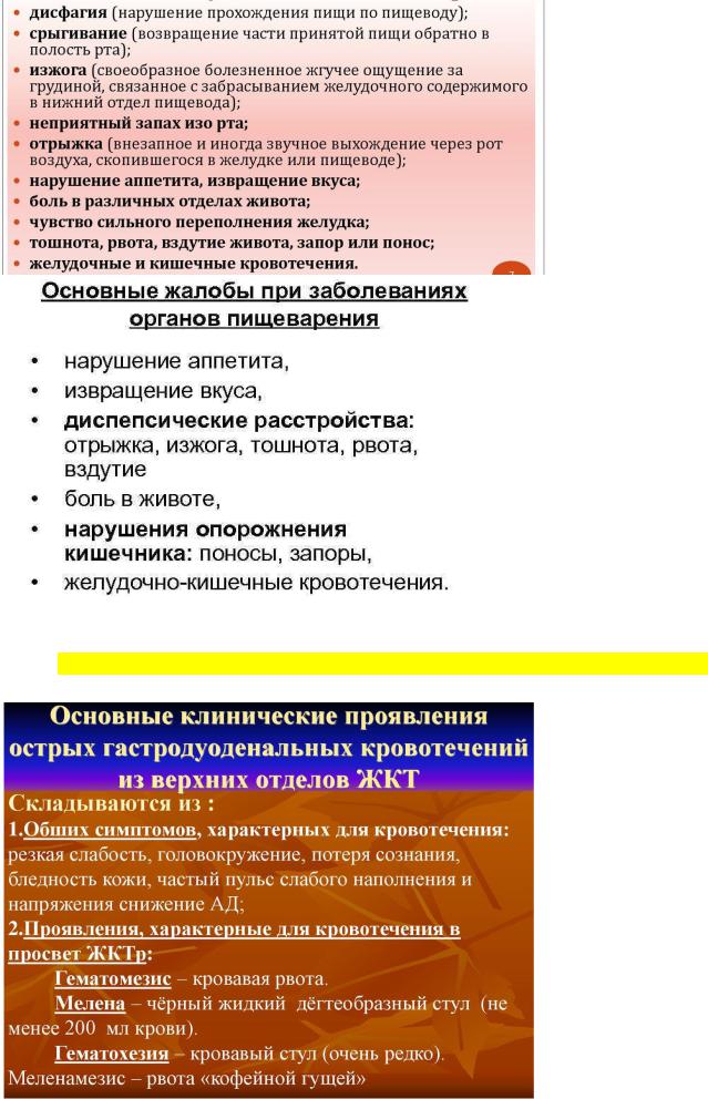23. Основные жалобы при заболевании органов пищеварения.