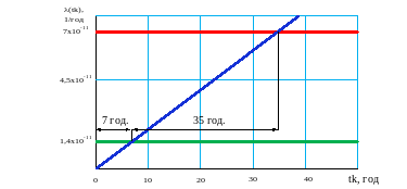 В ході дослідження визначено, що на графіках можливо представити декілька залежностей імовірності небезпечної відмови від періоду контролю. В такому разі можливо отримати межі значень , які відносяться до різних рівнів безпечності SIL.
