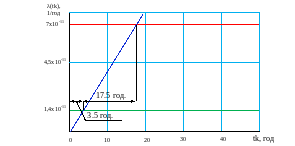 Графік залежності для структури 2-х дубльованих комплектів 2 з 2 та інтенсивністю відмови одного каналу 10-8 представлений на рисунку 4.10.